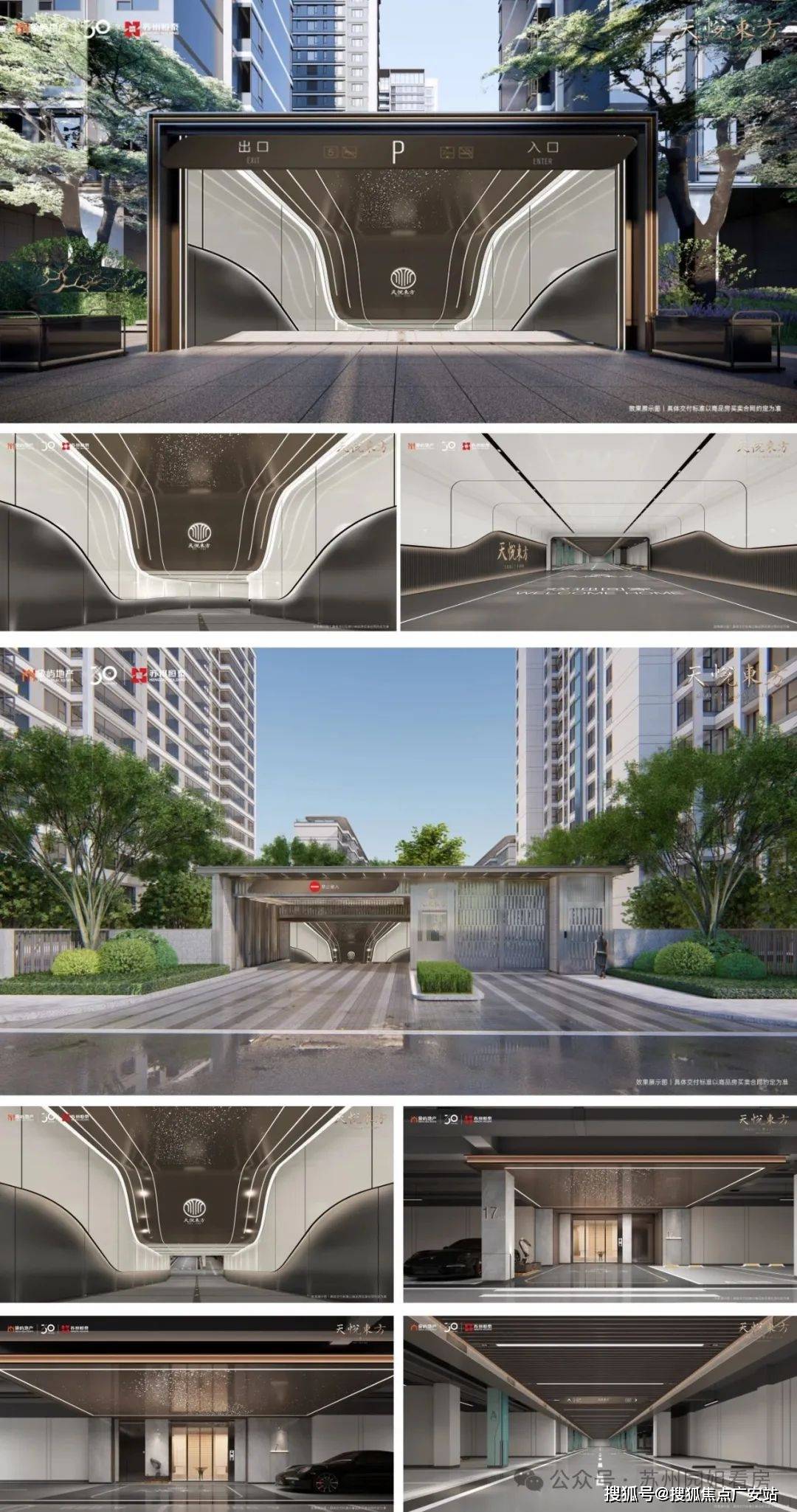 星空顶入库坡道、入库坡道石材铺拆、车道入口送宾玄关、莫兰迪色分区(柱面)、橘皮防滑环氧地坪、星光吊顶入户前厅、人脸识别精拆电梯大堂,万万级豪宅礼序,从归家起头。