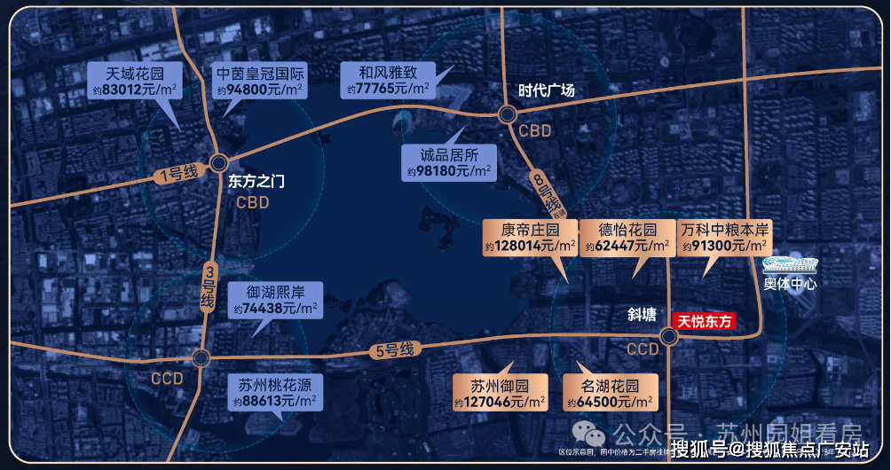背依斜塘老街时髦街区,紧邻邻里核心,向东约1km(一坐地铁)奥体核心,向西约1。5km邻瑞广场山姆超市、向北约2。5km时代广场、久光百货、IFS姑苏国际金融核心。沿中新大道取金鸡湖地道中转姑苏核心。